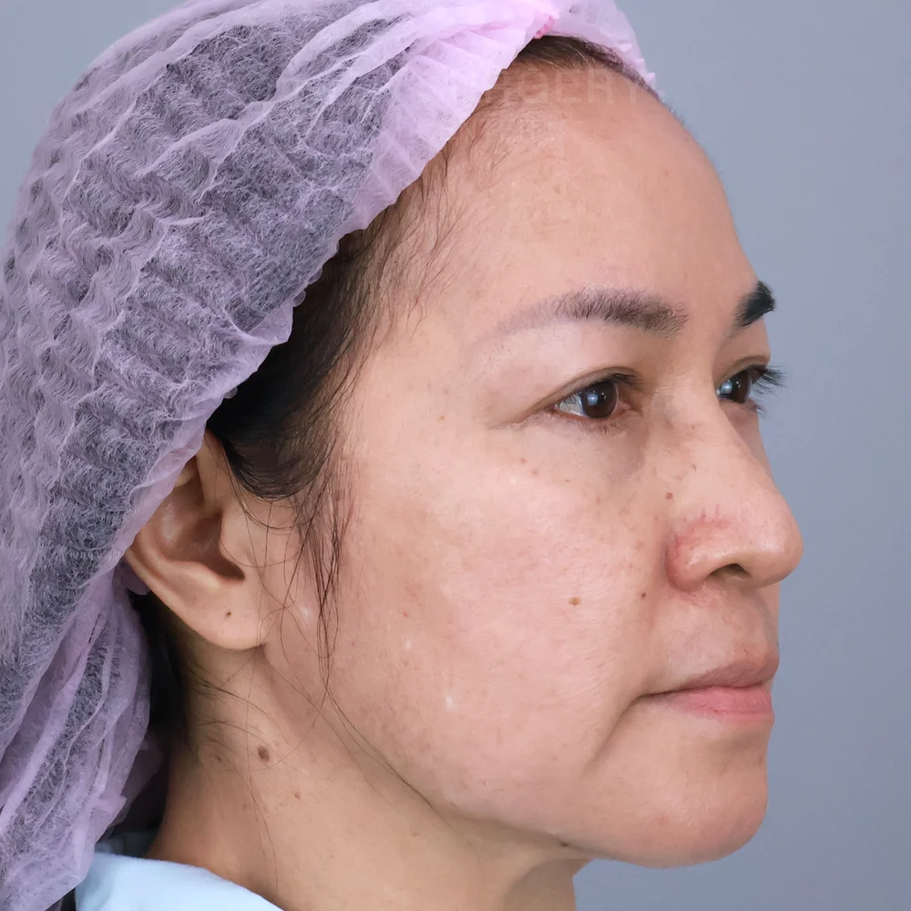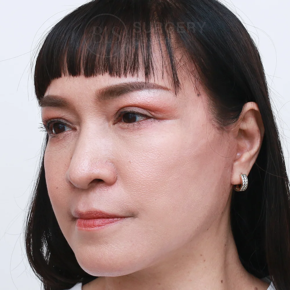 เคสนี้คนไข้ชอบถ่ายรูปและชอบไปเที่ยวคาเฟ่มากๆ อยากถ่ายรูปออกมา แล้วดูสวยทั้งในรูปและสวยทั้งตัวจริง อยากให้คนรอบข้างเห็นแล้วประทับใจ แต่พอเริ่มอายุมากขึ้น เริ่มมีปัญหาใบหน้าและหนังตาหย่อนคล้อย พอถ่ายรูปออกมาแล้วเห็นความเปลี่ยนแปลงไปจากเดิม เลยต้องการลดความหย่อนคล้อยบริเวณใบหน้าและรอบดวงตา โดยที่คนไข้ไม่เคยทำศัลยกรรมมาก่อนเลย แต่ว่าได้ดูรีวิวและเข้ามาปรึกษาหมอแล้วรู้สึกเชื่อมั่นในตัวหมอที่เป็นแพทย์เฉพาะทาง และมั่นใจในมาตรฐานของทางคลินิก ก็เลยตัดสินใจเข้ารับการผ่าตัด