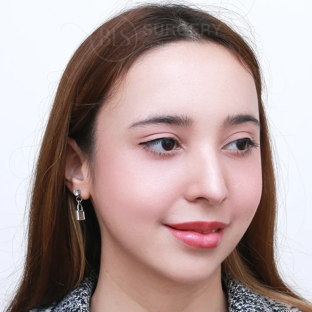 เคสนี้ก่อนทำมีปัญหาคิ้วตกและหางตาตกหนักมาก ทำให้ใบหน้าดูเศร้า บวกกับชั้นตาที่ดูใหญ่ ทำให้ดูตาปรือ และดูอิดโรย คล้ายคนอดนอน พักผ่อนน้อย