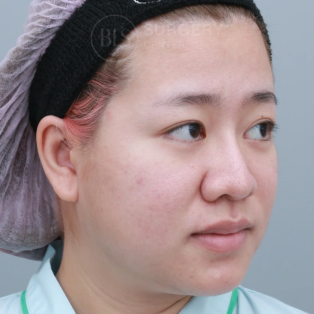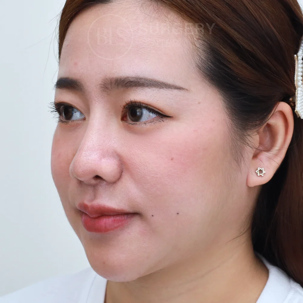 คนไข้เคสนี้มาปรึกษาหมอด้วยปัญหาหลักๆ คือ เสริมจมูกมาแล้ว แต่ยังดูเหมือนไม่ได้เสริม เพราะยังมีปัญหาจมูกใหญ่ ปลายไม่พุ่ง ทำให้ทรงจมูกดูไม่สวย อยากให้หมอแก้ทรงจมูก ให้สโลปปลายพุ่ง ดูแล้วรู้เลยว่าทำจมูกมา หมอวิเคราะห์โครงสร้างจมูกและวางแนวทางผ่าตัดอย่างละเอียด สำหรับเคสนี้หมอแนะนำให้เสริมจมูกด้วยเทคนิค Open พร้อมใช้เทคนิคการรองปลายด้วยวัสดุที่มาจากร่างกายตัวเอง 100% โดยไม่ใช้ซิลิโคนในการเสริมเลย เป็นการปรับยืดตรงปลายด้วยกระดูกซี่โครง เพื่อให้จมูกเป็นทรงเรียวยาว ทำให้จมูกพุ่งได้มากกว่าเดิม ปลายจมูกเล็กลง ใบหน้ามีมิติมากขึ้น โดยไม่เสี่ยงทะลุ ลดความเสี่ยงของการแก้จมูกซ้ำได้เป็นอย่างดี