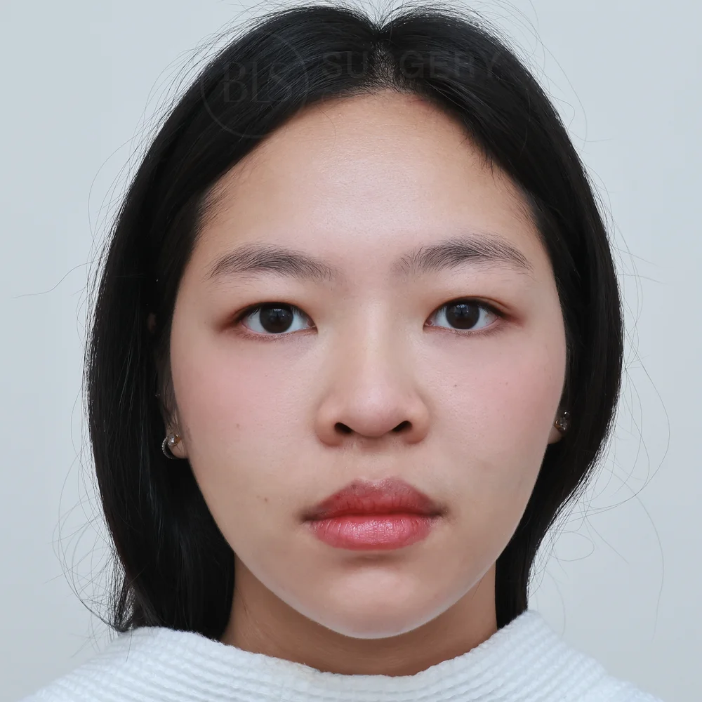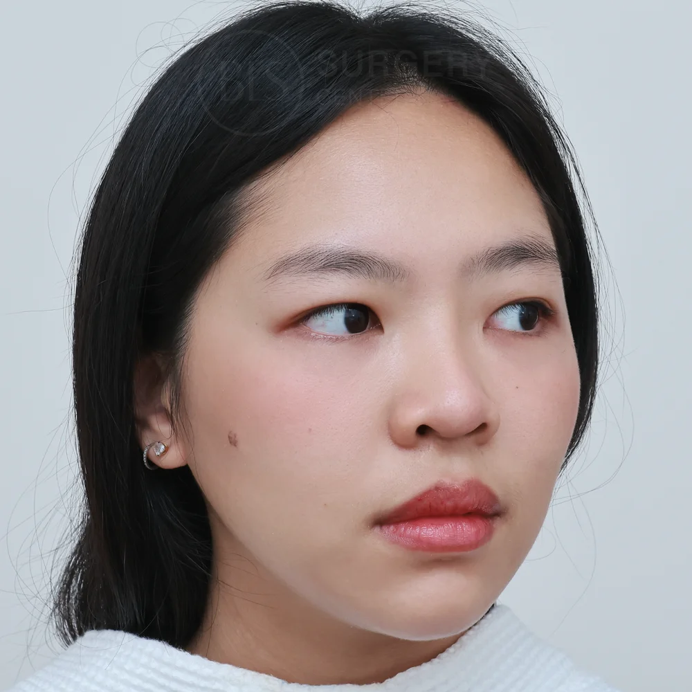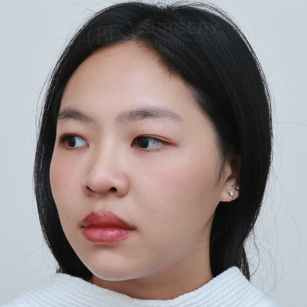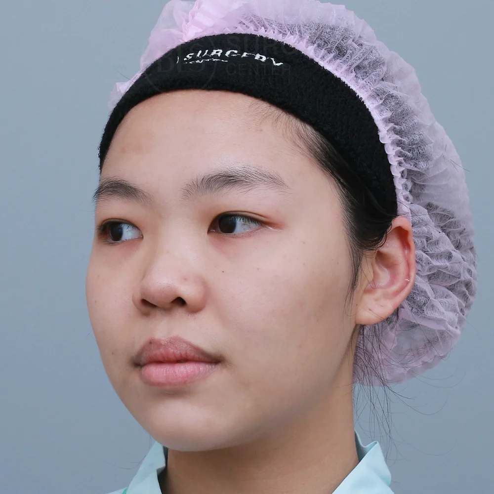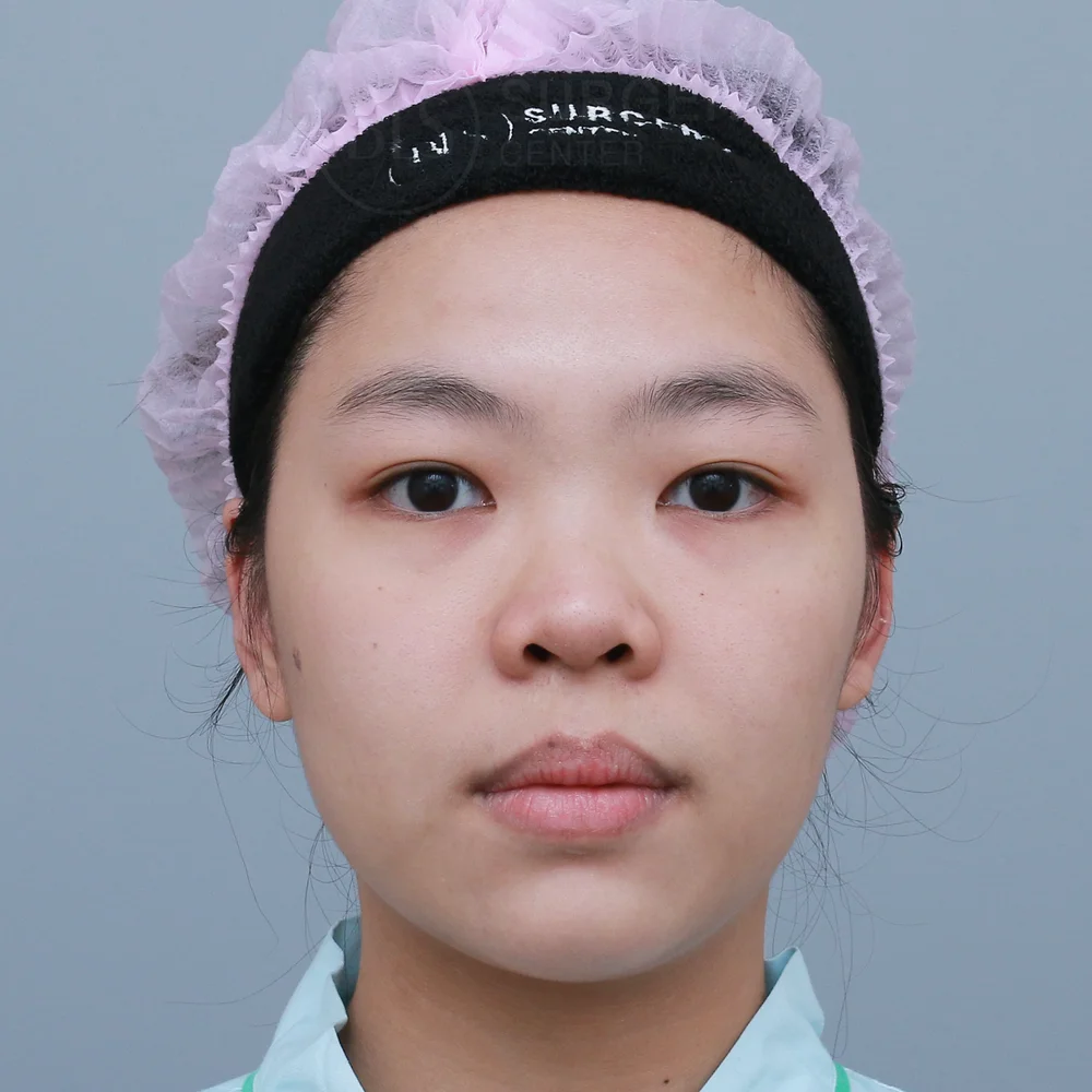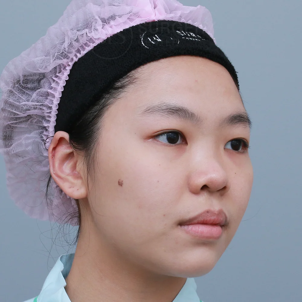 โครงสร้างจมูกของคนไข้เคสนี้ ก่อนทำทรงจมูกสั้น ปลายไม่พุ่ง ปลายแหงนเล็กน้อย ทำให้หน้าดูไม่มีมิติ จึงมาปรึกษาหมอที่คลินิก หมอประเมินปัญหา วิเคราะห์โครงสร้างจมูก รวมถึงเนื้อจมูกของคนไข้ แล้วแนะนำการเสริมจมูกแบบ Closed ร่วมกับการรองปลายจมูกด้วยกระดูกอ่อนหลังหู ซึ่งเป็นเนื้อเยื่อของคนไข้เอง ช่วยลดความเสี่ยงของการเกิดอาการแพ้ จึงมีความปลอดภัยสูง ช่วยเพิ่มปลายจมูกให้มีความหนาและเรียวยาวขึ้น แล้วยังช่วยลดการเสียดสีของซิลิโคน ป้องกันปลายจมูกทะลุในอนาคต ช่วยให้จมูกหลังเสริมดูเป็นธรรมชาติมากขึ้นด้วย